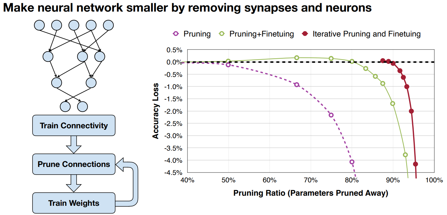- Pruning - Making weight/activations to zero such that specific hardware can make use of it.