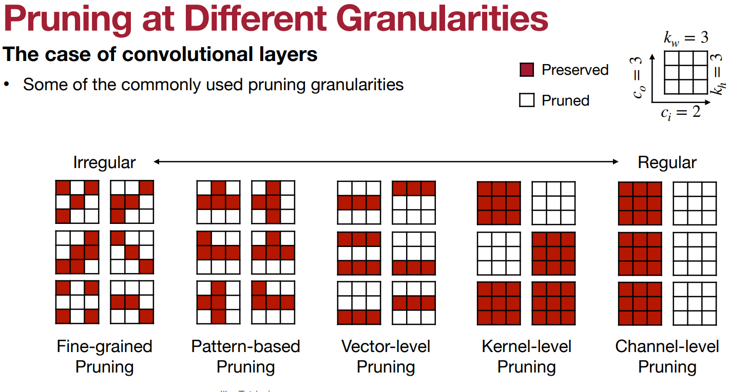 - N:M Sparsity - In each contiguous M elements, N of them are pruned.