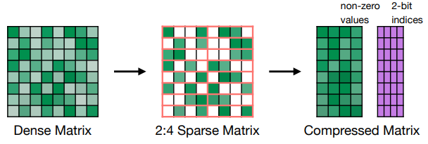 - N:M Sparsity, 2:4 sparsity (50% sparsity)