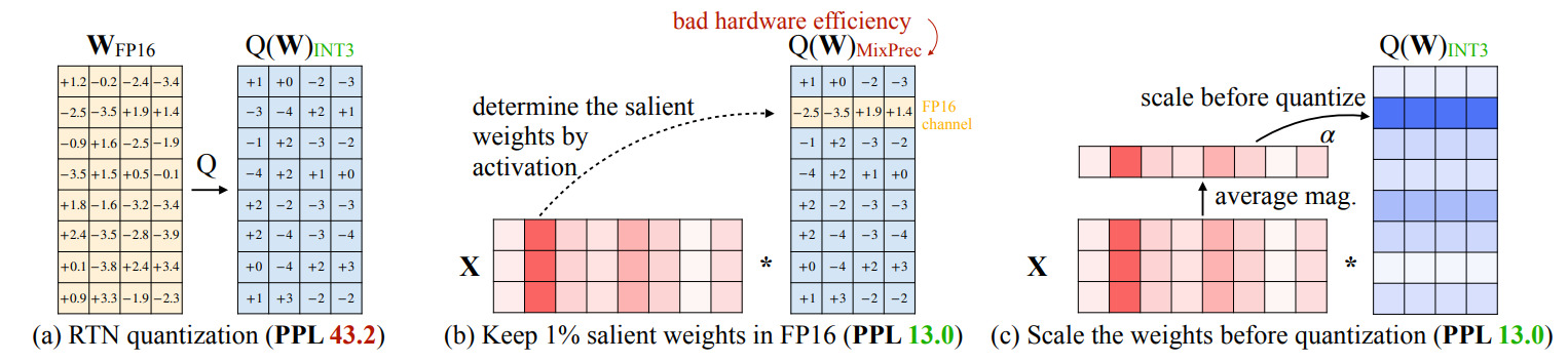 - Just keeping 1% of salient weight improves PPL(perplexity) from 43.2 to 13.0