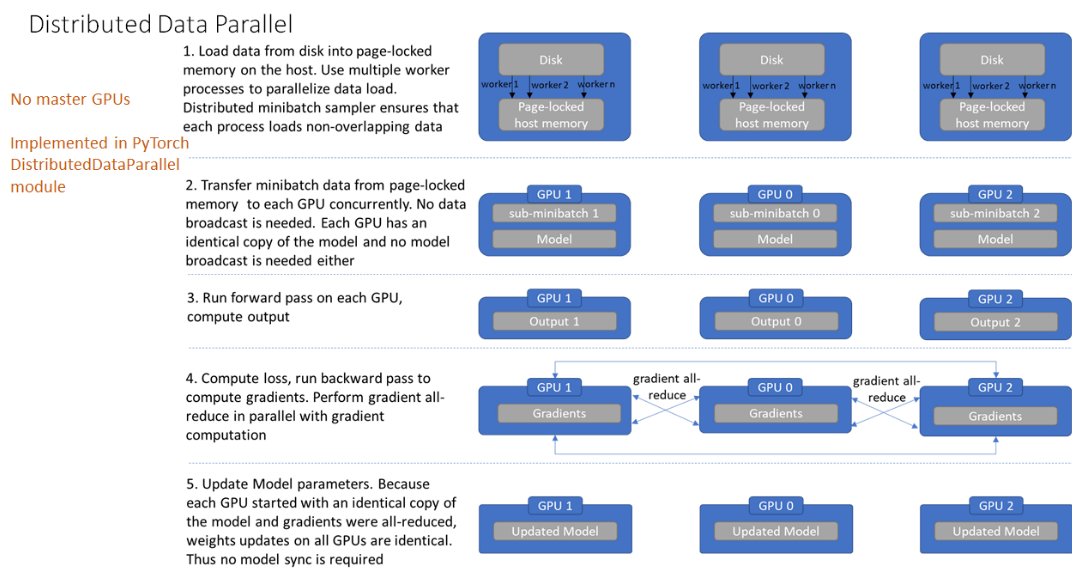 | Gradient Aggregation | Gradients averaged on the CPU/Single GPU | Gradients synchronized across processes using NCCL |
