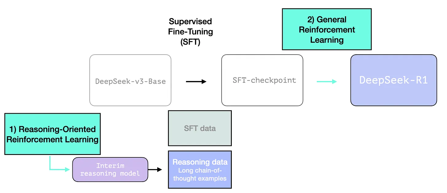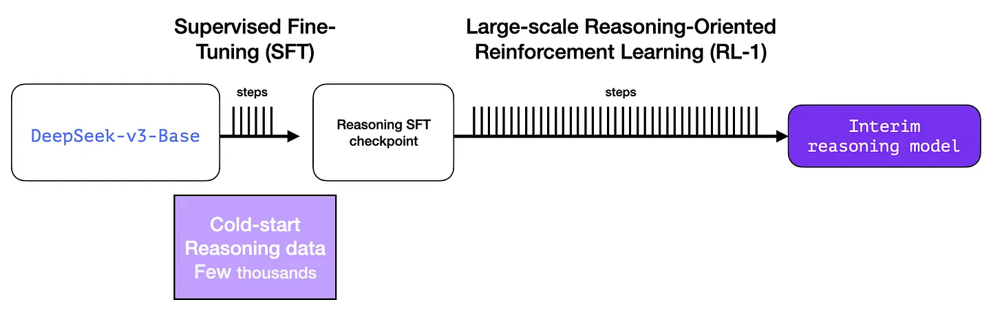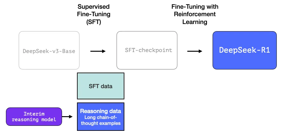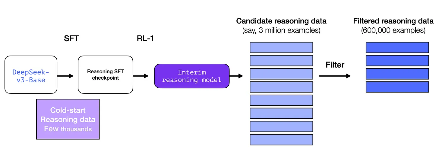 - creating an interim reasoning model to generate SFT data points