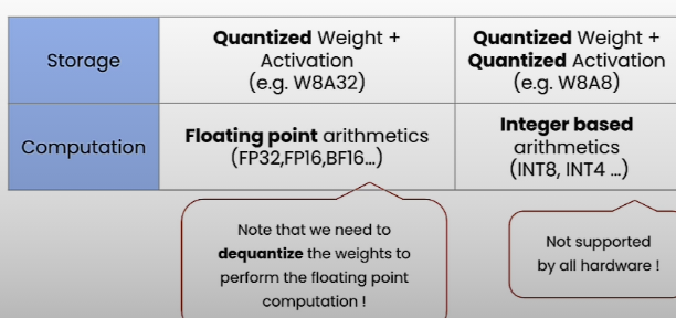 - Quantization Scheme: Use a hybrid quantization scheme where model weights are quantized as int4, and activations are kept in float16. During inference, weights are dynamically dequantized to float16, and actual computations are performed in float16.